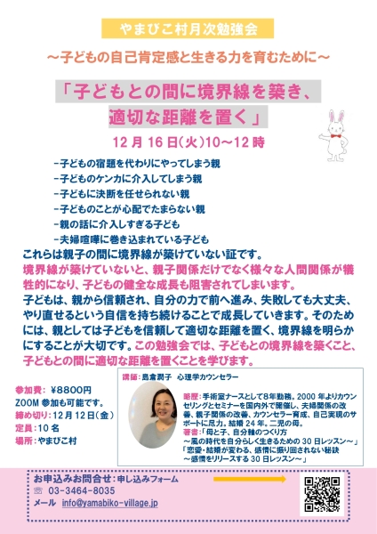月次勉強会「子どもの自己肯定感と生きる力を育む」